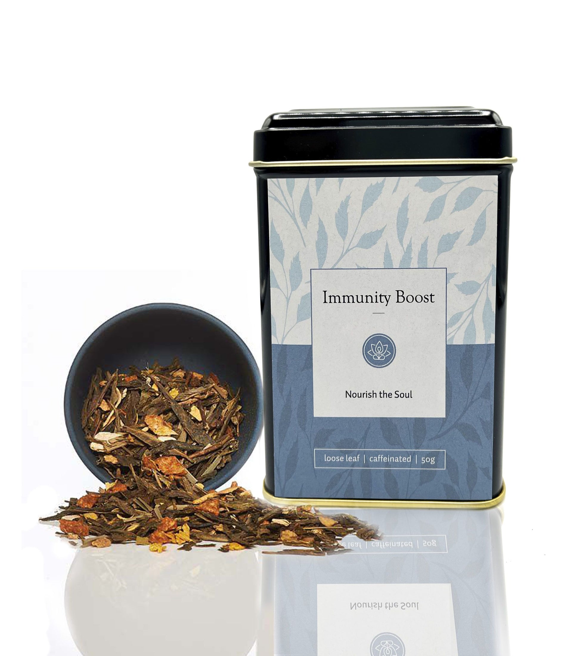 This delicate Japanese green tea with red Korean ginseng, safflower, fruits and a hint of tangerine is blended to help boost the immune system. It is generally agreed that ginseng improves overall well-being by increasing energy, improving mental function and enhancing immunity. Green tea is high in vitamins B & C and minerals. Scientific studies have shown strong evidence that green tea may help reduce the risk of stroke & heart disease and may also prevent some cancers. An average 6 oz. cup of green tea contains approximately 30 mg of caffeine vs.120 mg of caffeine in coffee. So relax and enjoy a cup of Immunity Boost Green Tea.