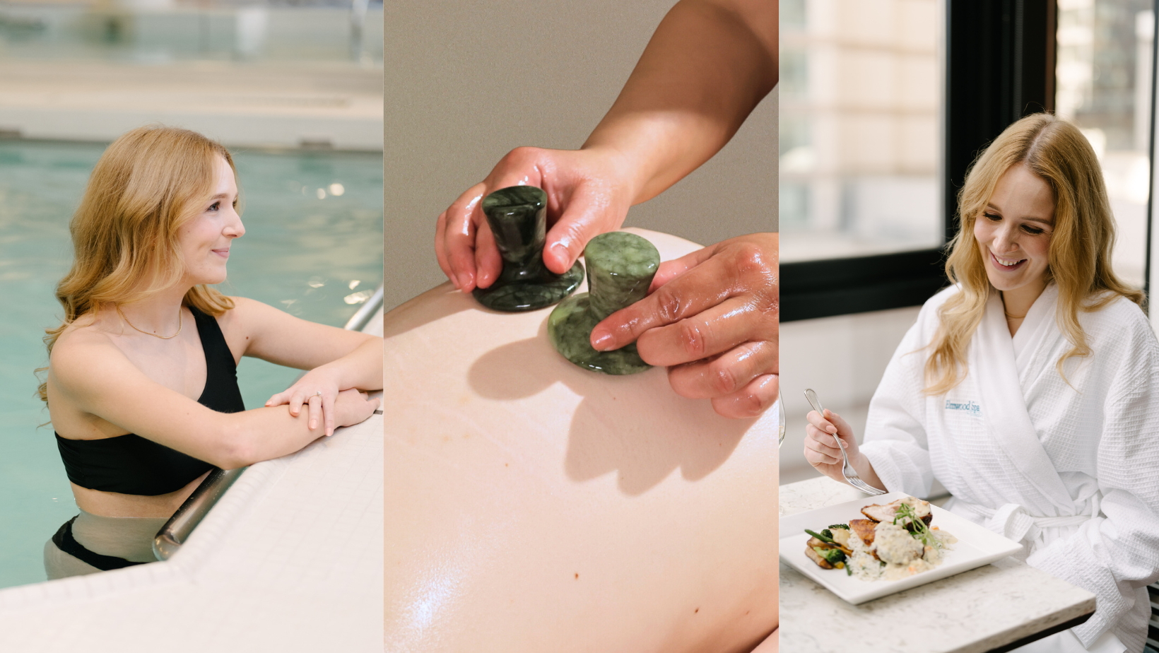 The Holiday Escape includes: Water Therapies (swimming pool, whirlpool, and steam room), 50 minute Elmwood Signature Restorative Massage and a Three Course Lunch at the Terrace Restaurant.*